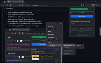 Con Link Extractor, los usuarios pueden extraer todos los enlaces y dominios de cualquier sitio, extraer enlaces de texto seleccionado en cualquier sitio, o incluso extraer enlaces del portapapeles o cualquier texto. El programa también ofrece la comodidad de abrir múltiples enlaces en pestañas desde el texto y copiar el texto de un enlace a través del menú contextual.